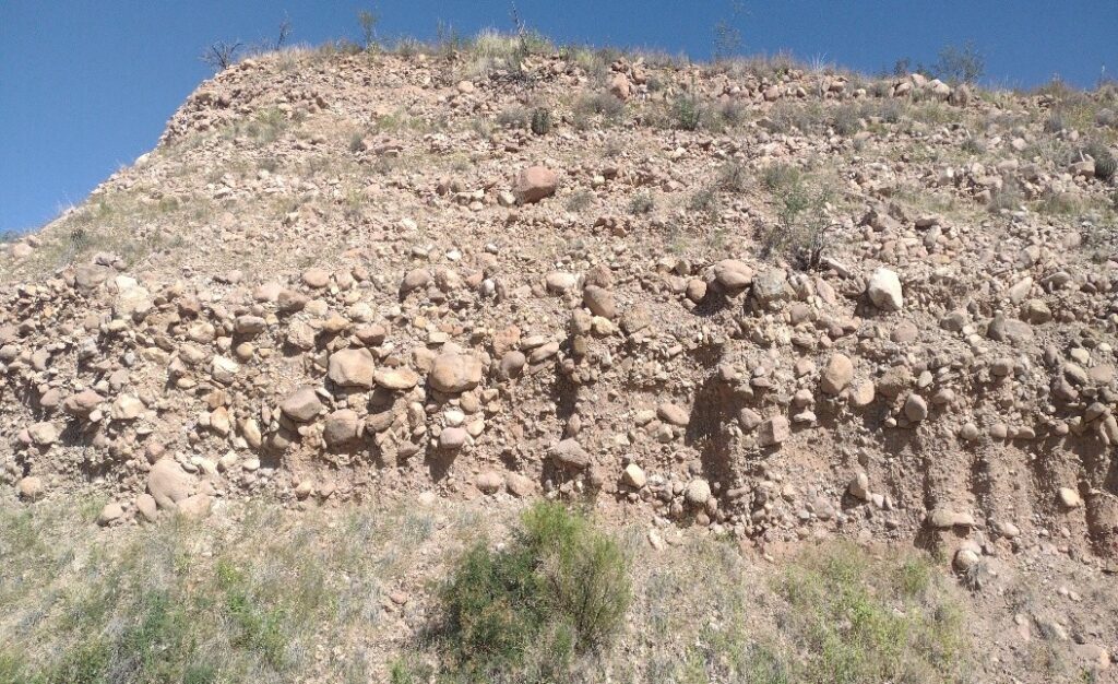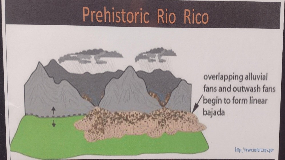 One can see these gravels, sand and boulders in road cuts, in canyons like Peck and Agua Fria. Rio Rico has one of the best examples of the bajada feature outside of Death Valley.